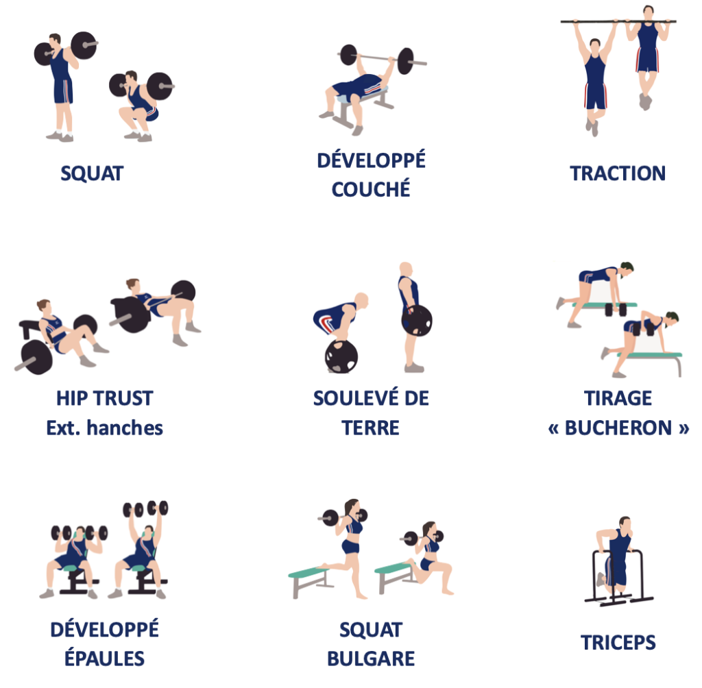 Afin d’ajuster la charge avec laquelle le travail sera le plus efficace, il faut, en préambule, déterminer la charge maximale ou « 1RM ». Cette mesure représente la charge maximale que chaque athlète peut soulever pour une seule répétition d’un exercice spécifique tout en conservant une réalisation correcte.