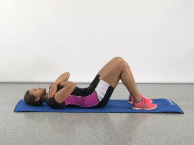 Allongé sur le dos, jambes fléchies, pieds au sol. Alterner les deux actions :
