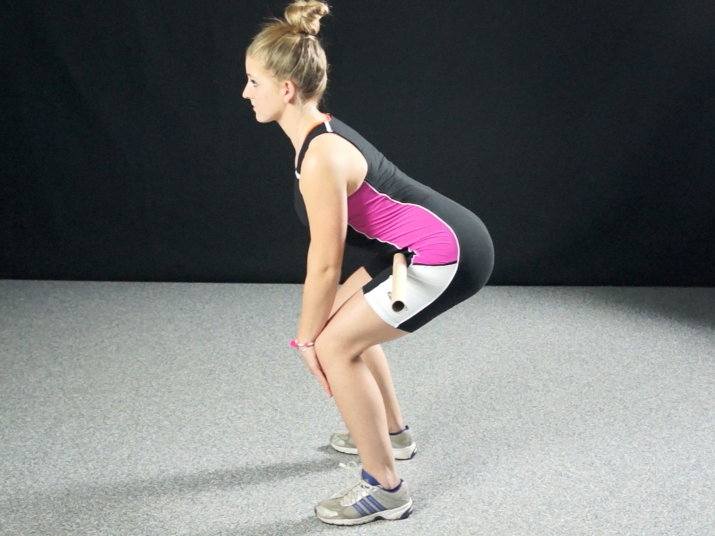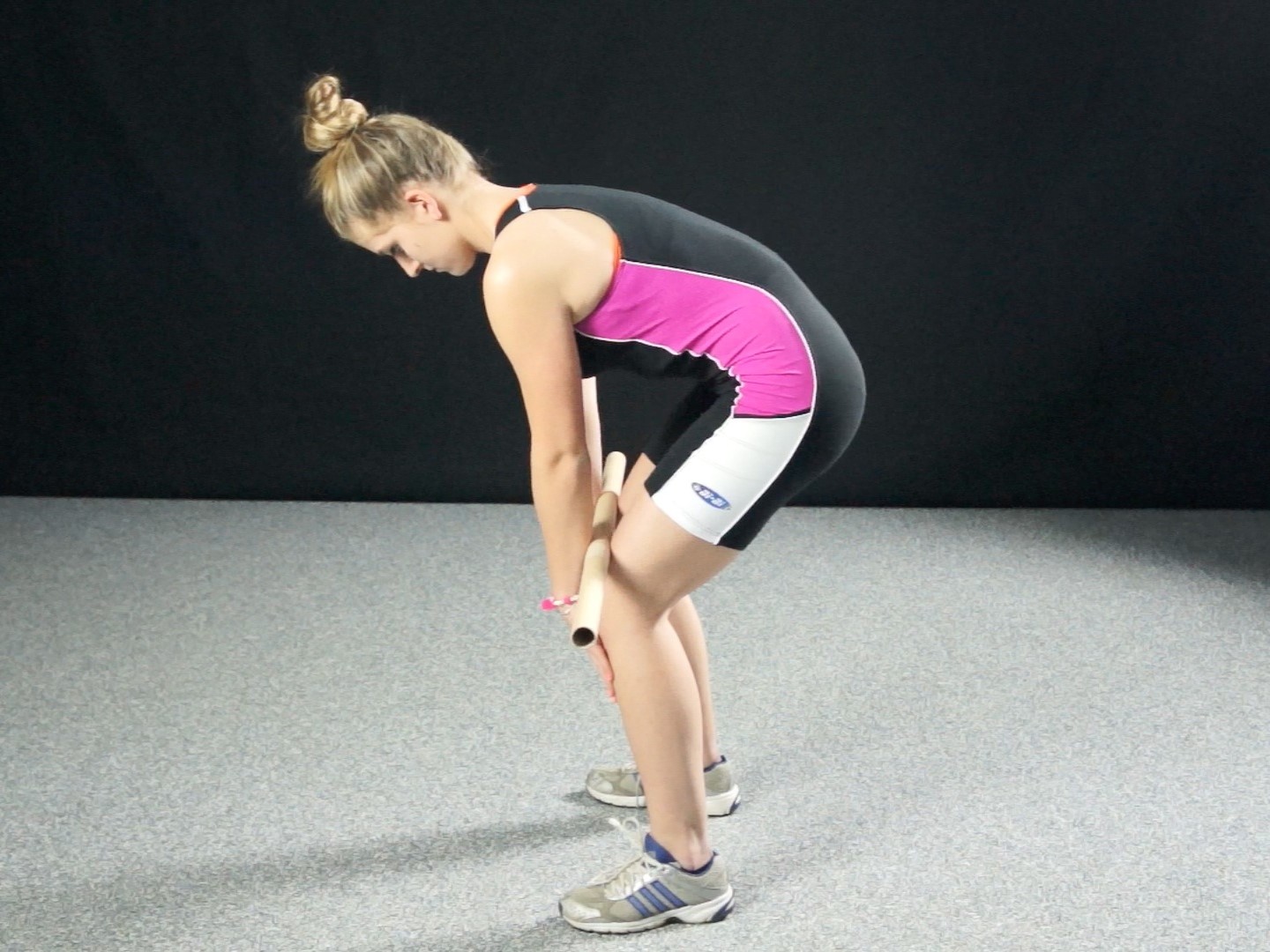 - libérer le bâton en basculant le bassin vers l’arrière afin d’arrondir le dos.