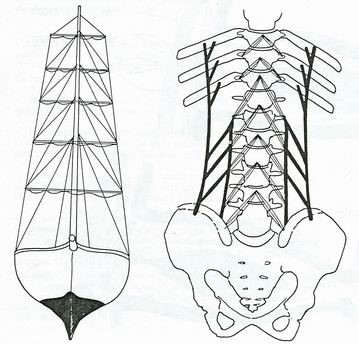 Au niveau du tronc, constitué de nombreuses pièces osseuses, ce système de haubanage est déterminant pour maintenir une posture équilibrée et envisager des mouvements tout en respectant les courbures naturelles du rachis afin de minimiser la pression sur les disques intervertébraux. Cela permet de réduire les risques et garantir l’intégrité de l’individu.