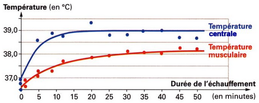Par l’activité physique la température corporelle s’élève pendant l’échauffement, ce qui produit les effets suivants :