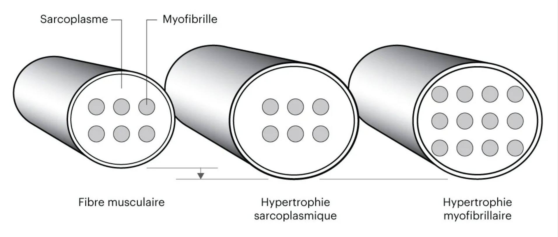 • Hypertrophie sarcoplasmique : augmentation du volume du liquide intracellulaire, liée à la taille musculaire.